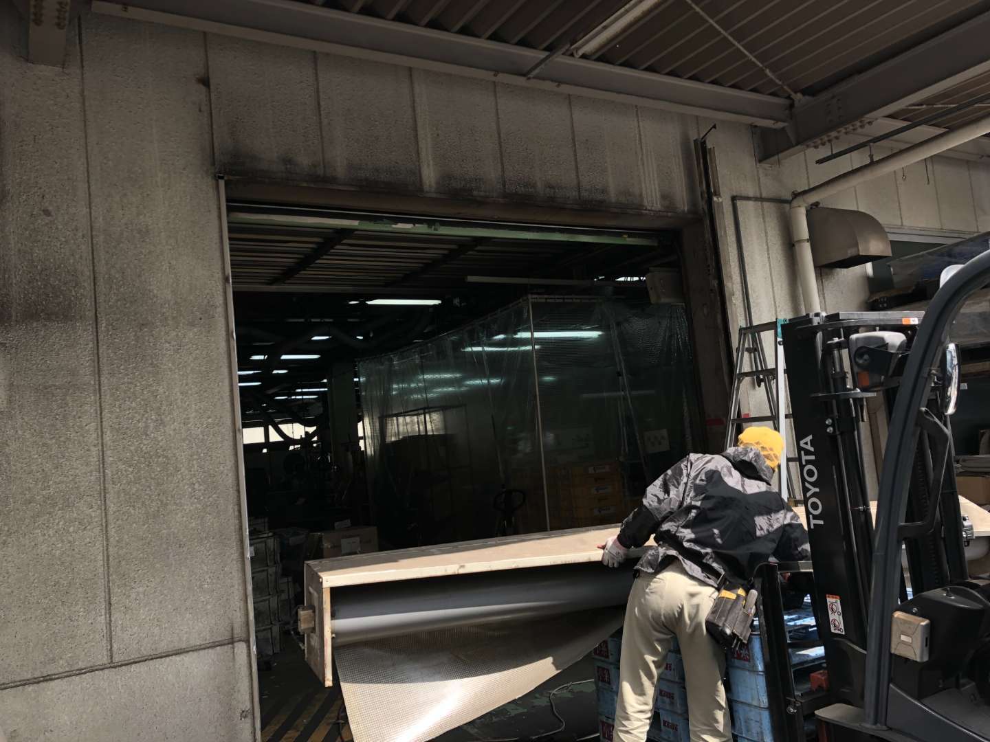 神奈川県藤沢市の工場より強風によりシャッターが外れてしまったとのご依頼 真ん中の脱着式中柱が外れ、シャッター板も外れていた状態でした 部品…